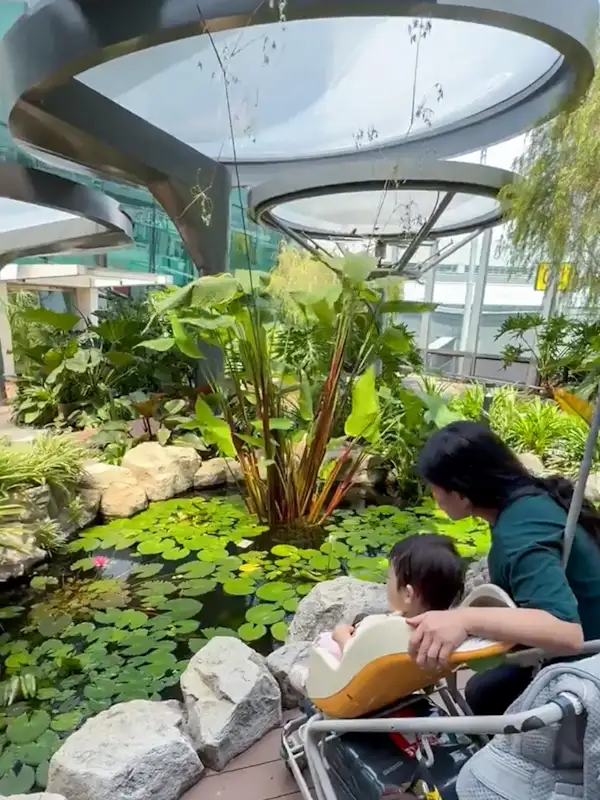 Inspired by Kyoto’s bamboo forest, this is a calm spot to slow down with kids, take a short walk, or sit and rest. To get here from Changi Airport MRT, take the escalator to Terminal 2, Level 1. Then, head to Coach Bay, follow the signs to Hub & Spoke Café, and walk 200m to Bamboo Grove.